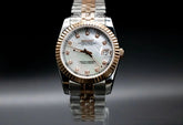 Elevate your style with the Champagne Pearl, a luxurious 26mm women's wristwatch that blends timeless elegance with modern craftsmanship. Designed for the sophisticated woman, this watch features a two-tone stainless steel bracelet with radiant gold accents and a mother-of-pearl dial that shimmers with every movement.